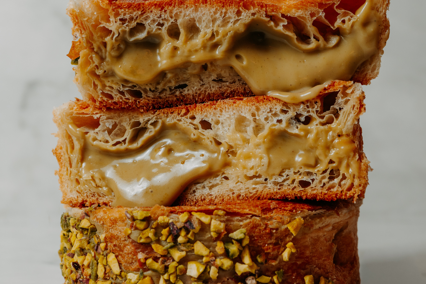 La nostra crema al pistacchio si arricchisce di nuove consistenze per un’esperienza di gusto ancora più sorprendente.